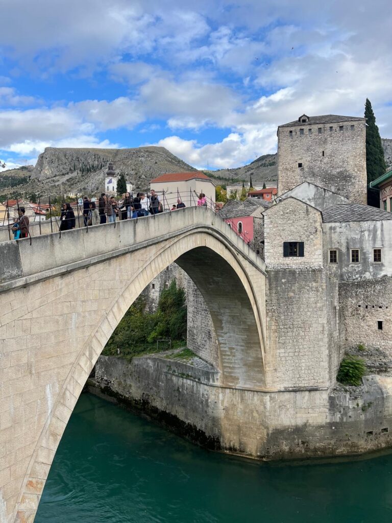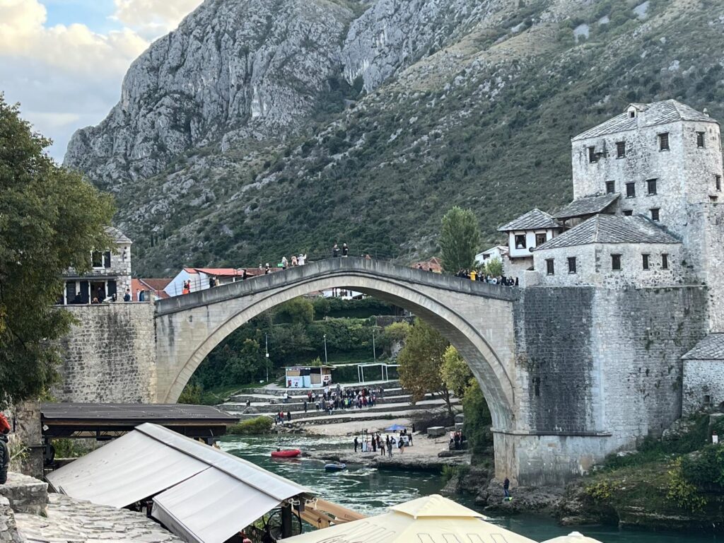Pois bem, chegamos. Uma cidade linda, marcada pela história de uma ponte. Aliás, Most em bósnio significa “ponte”. Uma ponte construída no século XVI, onde ortodoxos, católicos e muçulmanos conviveram por séculos, cruzando de um lado a outro sem inimizades ou preconceitos. Até que a terrível guerra veio — e a ponte foi destruída em 1993.
