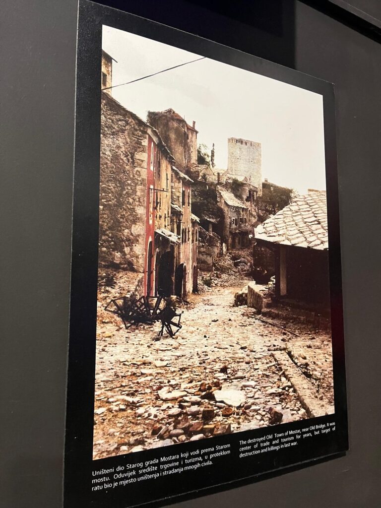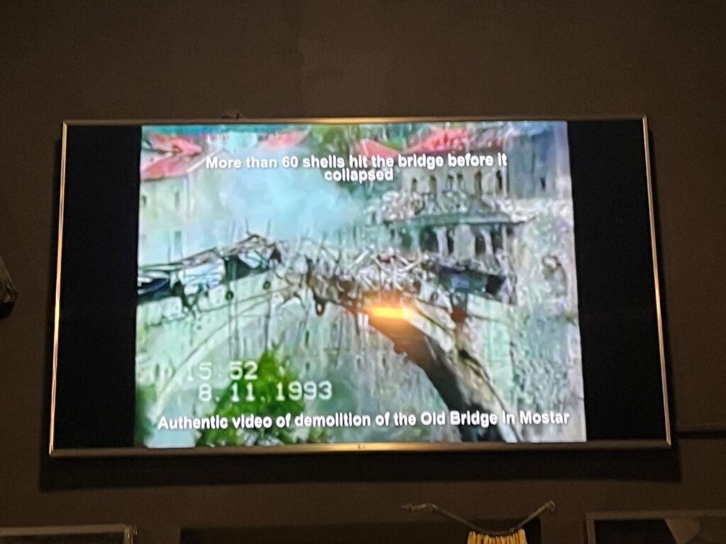 A ponte de Mostar caiu, e a cidade ficou dividida: de um lado, católicos; de outro, muçulmanos. Silêncio, dor, separação — e lembranças registradas em diários terríveis, que hoje encontramos no museu da cidade, revelando feridas ainda abertas deste capítulo sombrio da antiga Iugoslávia.