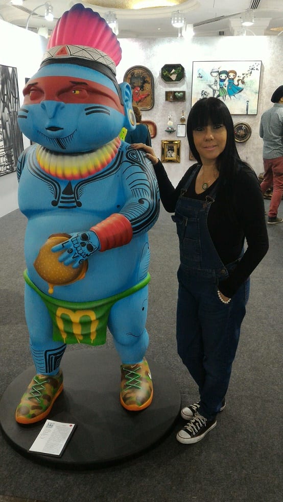 Fiquei encantada com a Galeria Luis Maluf, que trouxe a arte urbana das ruas para o público que frequenta galerias. Uma escultura enorme do crânio, fazia as honras na entrada do espaço.