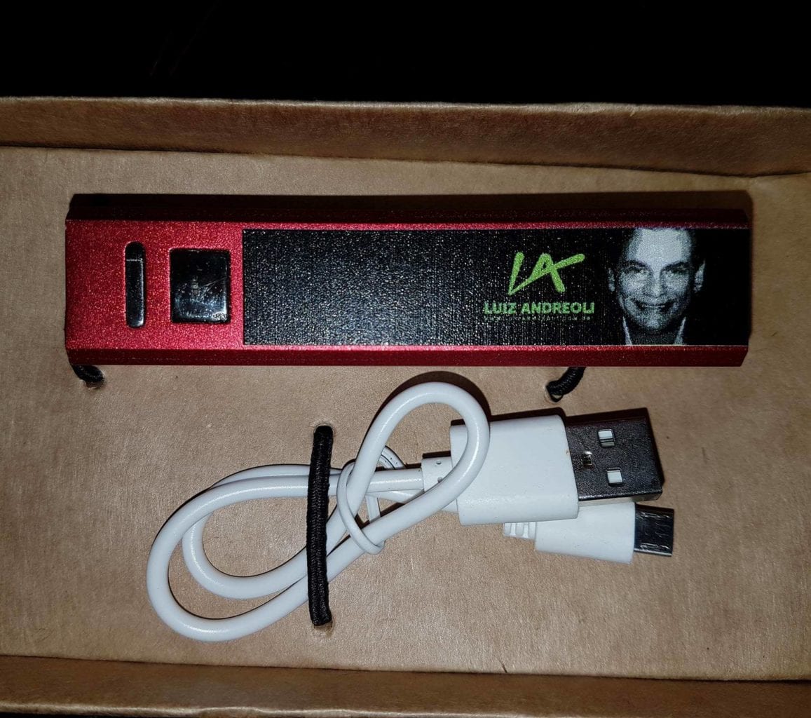 Além disso, para agradecer a presença de todos, contamos com a Pen Drive Personalizados, do amigo Edvan que ofereceu um power bank super bacana com a logo do nosso Portal do Andreoli para os convidados, que amaram a surpresa.