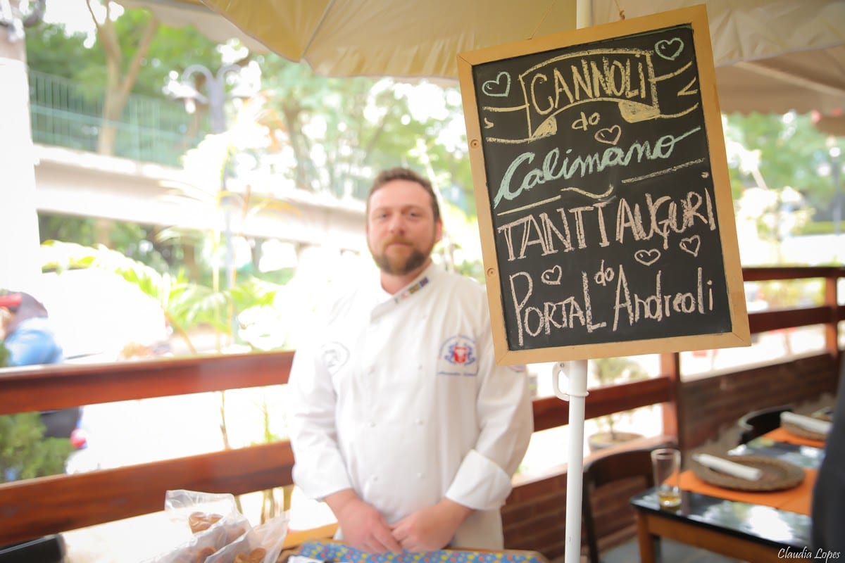 Servimos massas e vinhos, e ainda tivemos como sobremesa a deliciosa participação do Cannoli do Calimano, o melhor do Brasil, que adoçou com maestria nosso almoço.