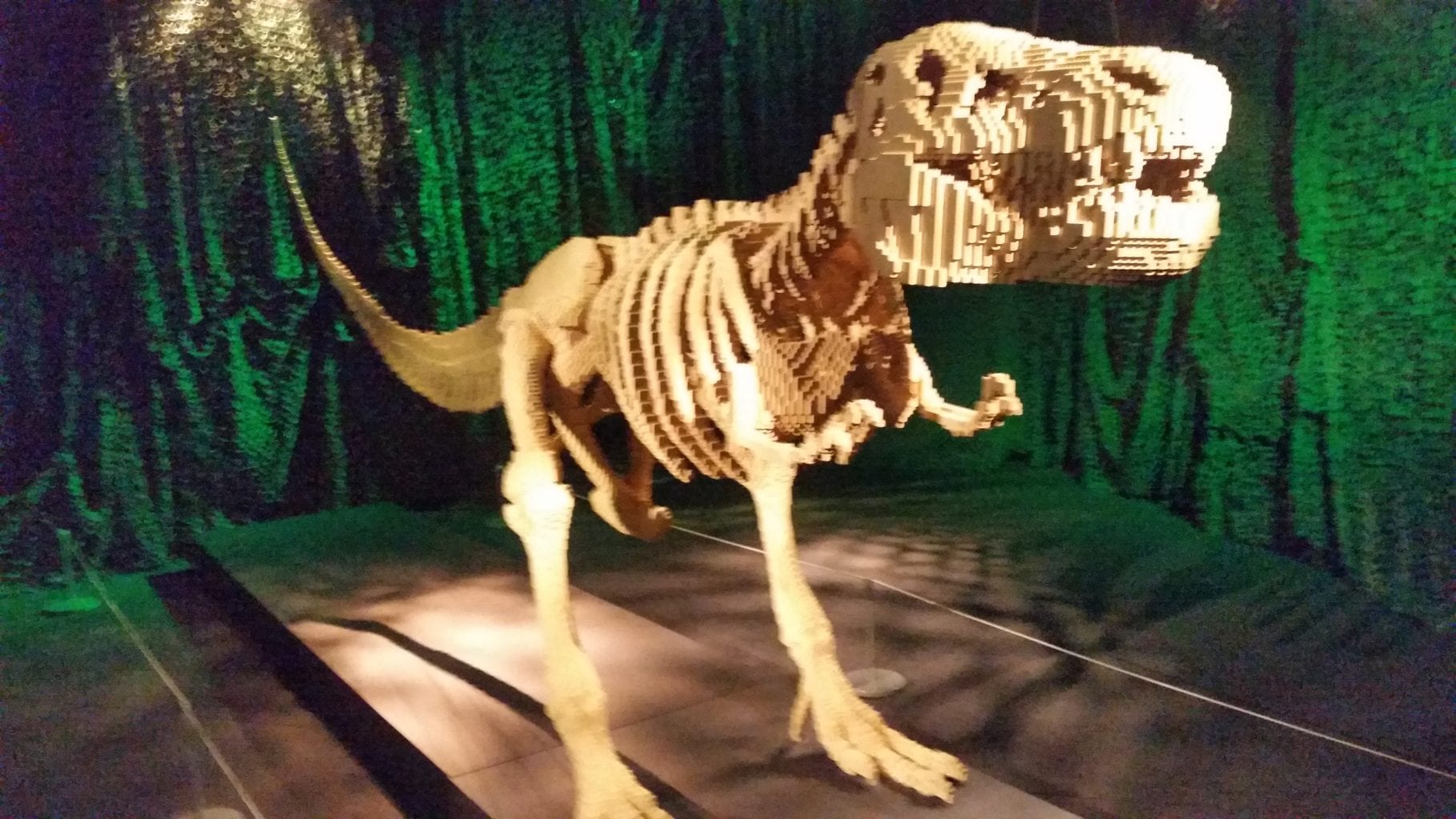 Para finalizar, um Tiranossauro Rex com 6 metros de comprimento e 80 mil peças utilizadas para dar vida a este gigante.